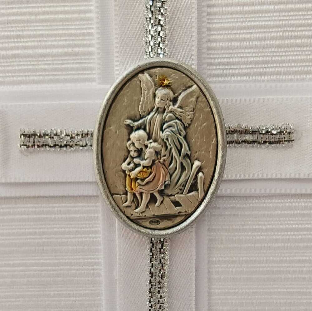 Kit de Primera Comunión Clásico en Blanco y Plata con Medallón del Ángel de la Guarda