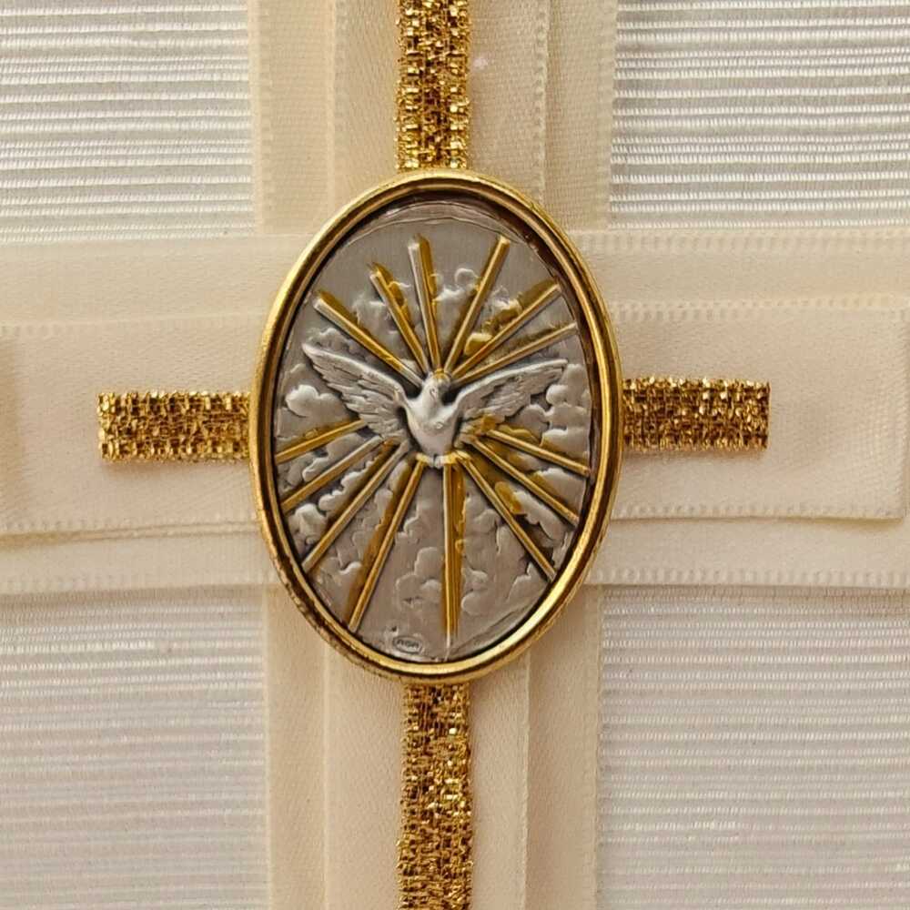 Un hermoso y emotivo detalle para acompañar este paso tan importante en la fe. Este elegante kit destaca por su delicada textura en tonos blancos y sutiles destellos dorados que inspiran paz y devoción. Incluye la sagrada biblia y su tradicional cirio a juego, ambos decorados con una fina cruz y la imagen del Espíritu Santo al centro. Un recuerdo invaluable, pensado con amor para atesorar toda la vida y celebrar este día inolvidable.