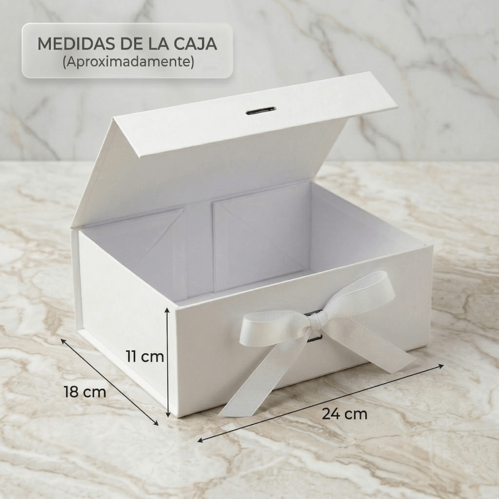Incluye Caja Especial: Para garantizar una presentación impecable y proteger tu compra, este producto se entrega dentro de una caja lista para tu evento. (Medidas aproximadas: 24 cm de ancho x 11 cm de alto x 18 cm de profundidad).